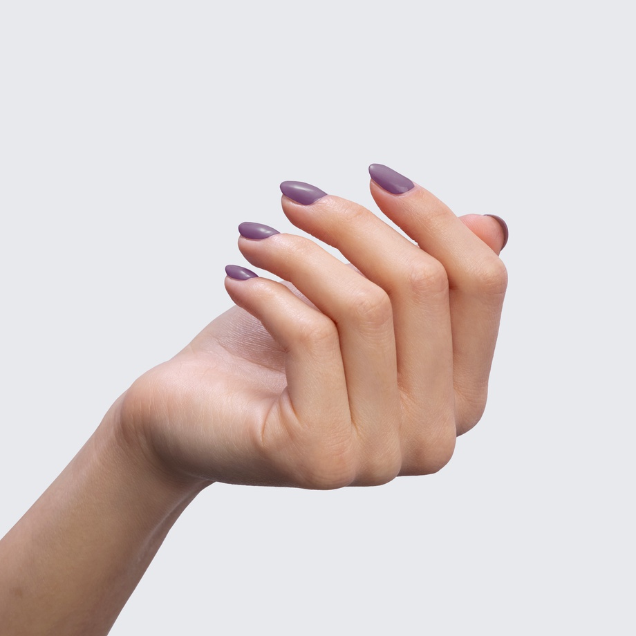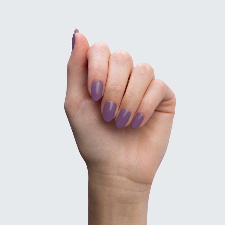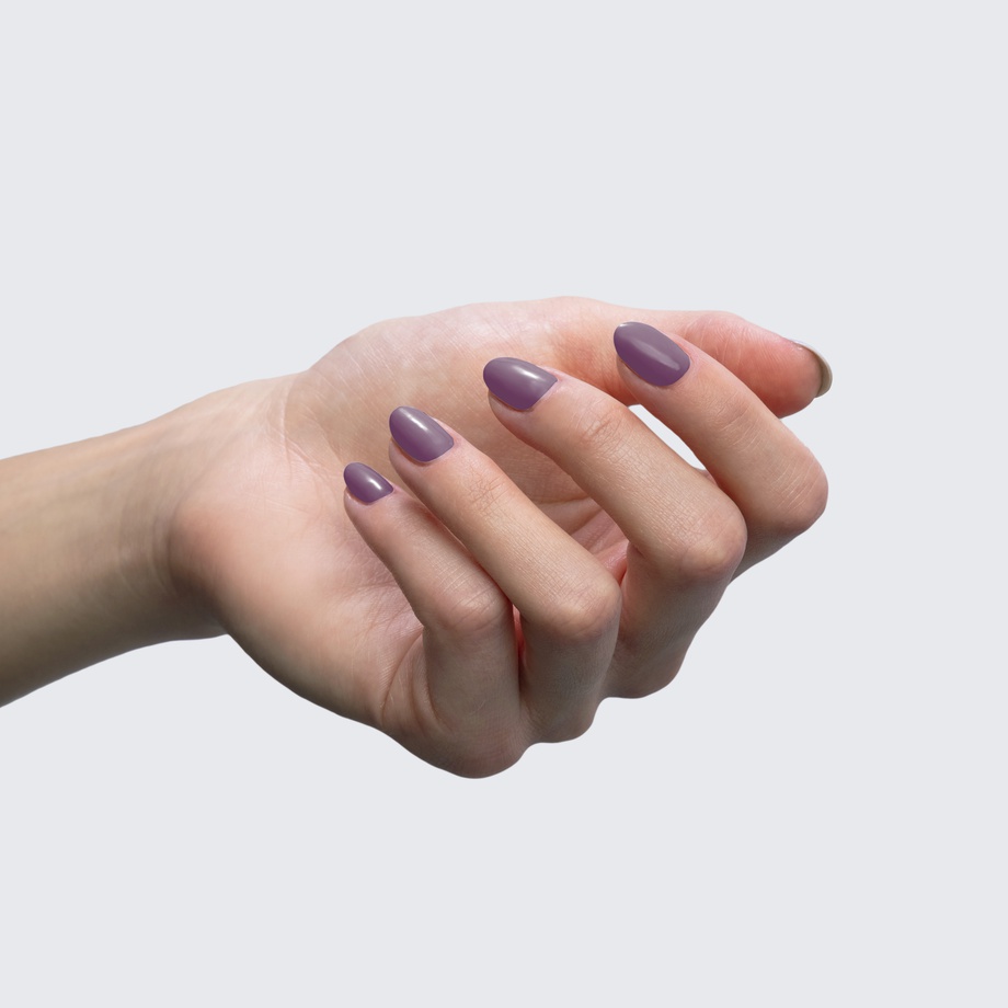 Dusty purple. Muted. Medium. Opaque. Warm undertone.